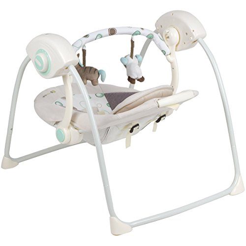 In einem cremefarbenen Naturton wirkt die Wippe angenehm. Sie ist gut gepolstert und verspricht in zwei Liegepositionen mit fünf Geschwindigkeiten eine optimale Verwendung. Die Wippe funktioniert für eine gute Unterhaltung und für viel Entspannung für die Kleinen mit rund 12 ruhigen Melodien. Die KinderKraft Easy Swing ist eine Wippe zum Schlafen, Entspannen, zum Beruhigen, zum Spielen mit Plüschtieren oder zum einfachen Dösen. Sie steht sicher auf der Seite, sodass das Baby in einer Liegeposition und in einer Sitzposition die Situation gut im Griff hat. Auf der Wippe finden sich viele Details, die das Baby für eine Weile intensiv in den Bann ziehen können.